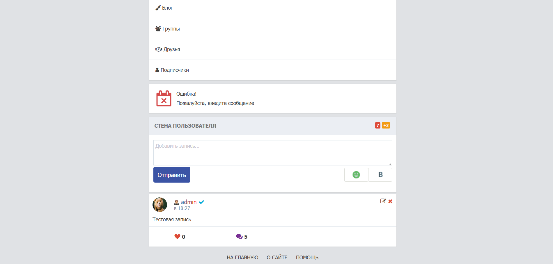 Длительное время занимаюсь разработкой своей социальной сети, но раньше как-то не шло, не было время и т.д. А вот последние две недели начал основательно ею заниматься. Всё написано с нуля. Дизайн адаптивный