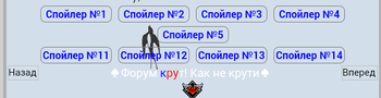 Отметим, что каждой из кнопок "Вперед" и "Назад" может быть несколько на одной страничке и располагаться они могут в удобном для Вас месте. Все кнопки независимо от их расположения будут выполнять одну и ту же функцию - переход к соседнему спойлеру от выбранного в данный момент.