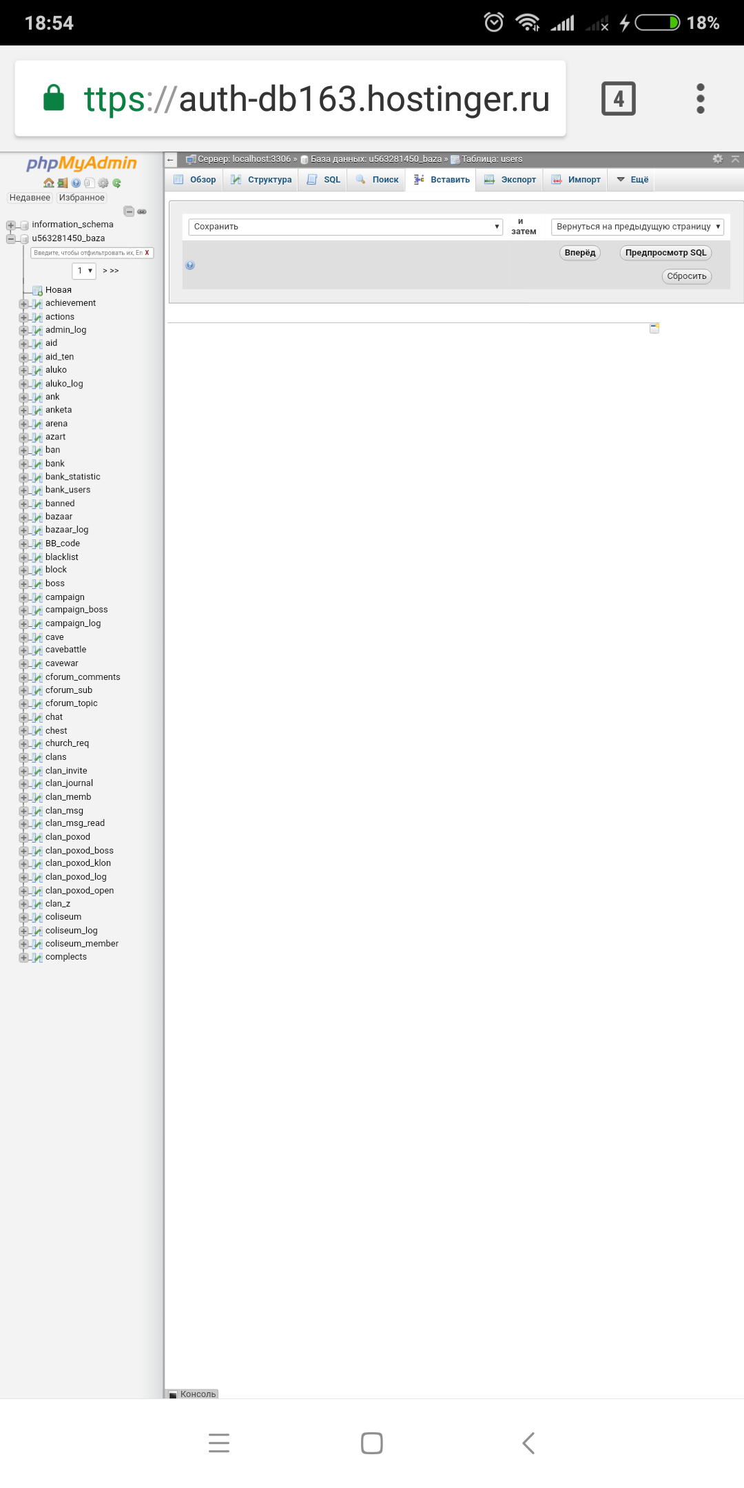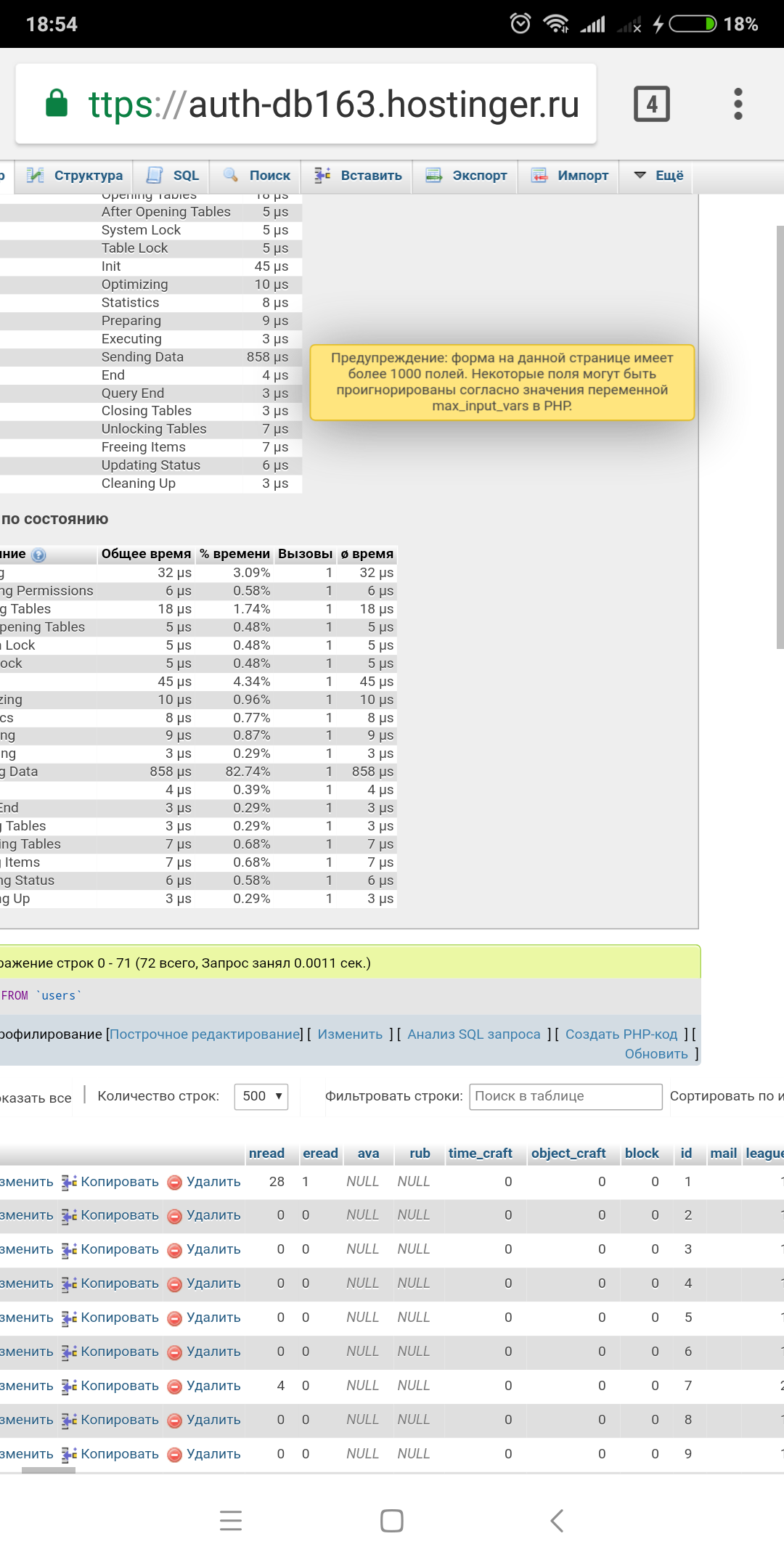 У меня короче в базе данных от битвы титанов ошибка структуры не могу редактировать кто поможет пишите