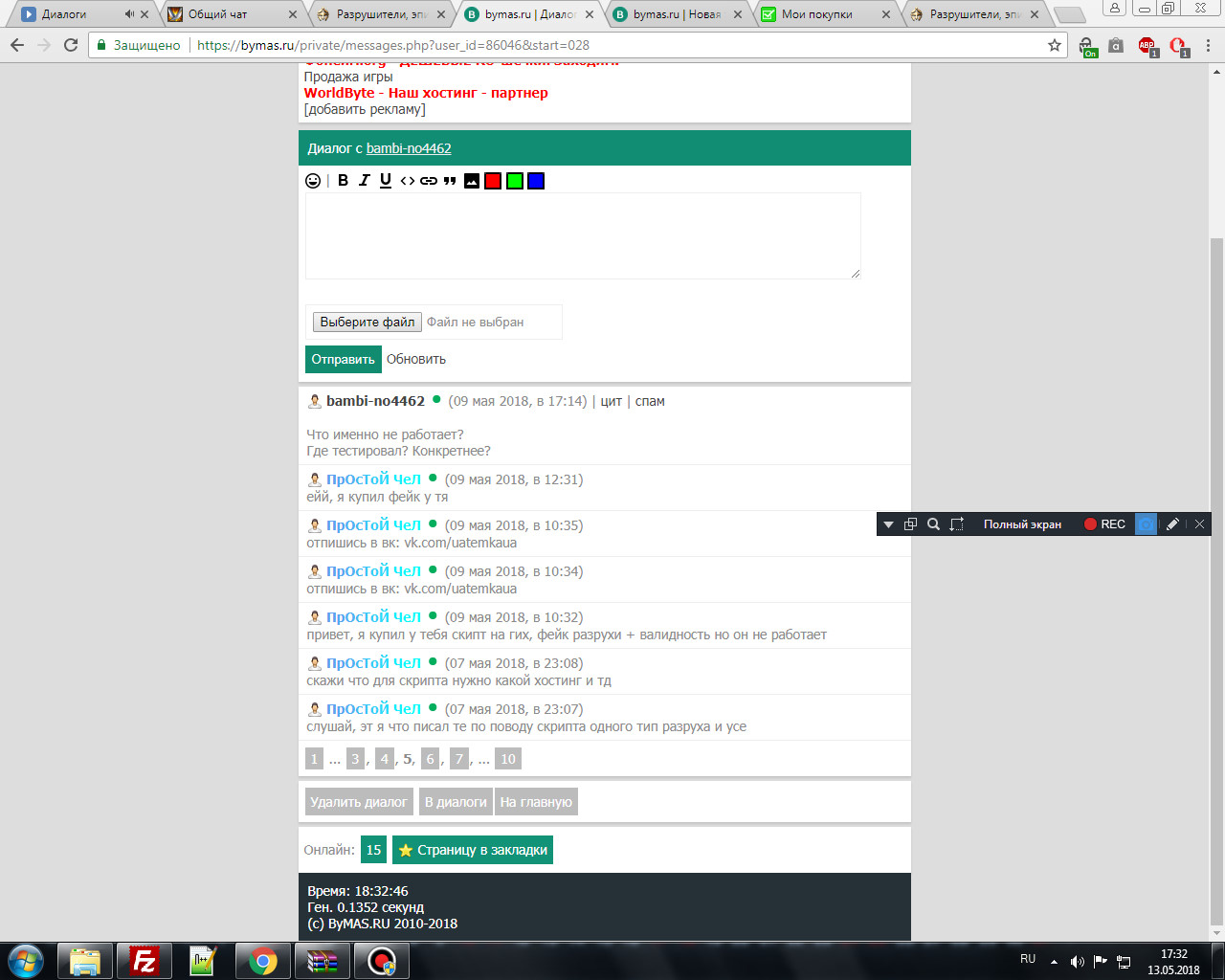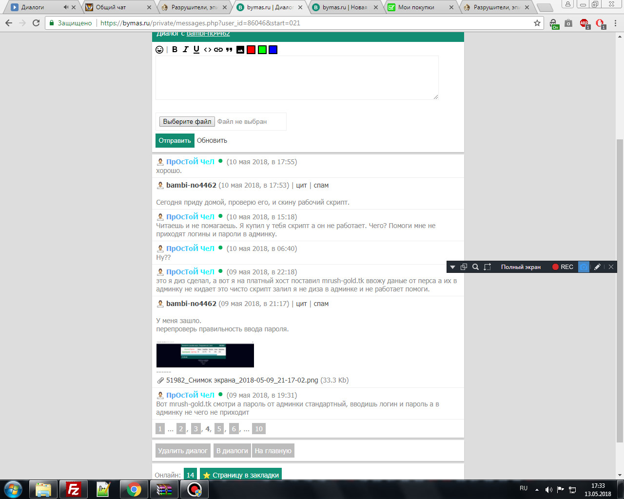 Так же смотрим скрины переписки.