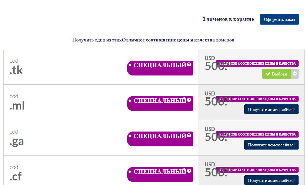 | Бесплатный домен