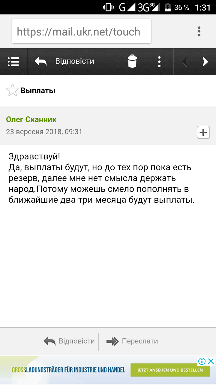 Итак, проверяют проект на выплату.Советуют сейчас собирать прибыль, ибо проект больше месяца или двух не простоит.Все чисто держится на деньгах вложивших.Ваше вложение (а оно абсолютно не обязательное) окупается в течении одной недели.