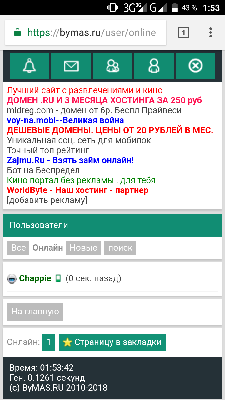 ApsenT , лично сейчас я присутствую на данный момент на форуме бумас где онлайн 4 человека, а так же на форуме w**********.*** Где онлайн 47 и при том все общительные в чате-форуме, а если напишешь любому в ЛС то через 2+- минуты получаешь ответ на все вопросы, а так же остаёшься довольным! Сылку не скину так как получу бан