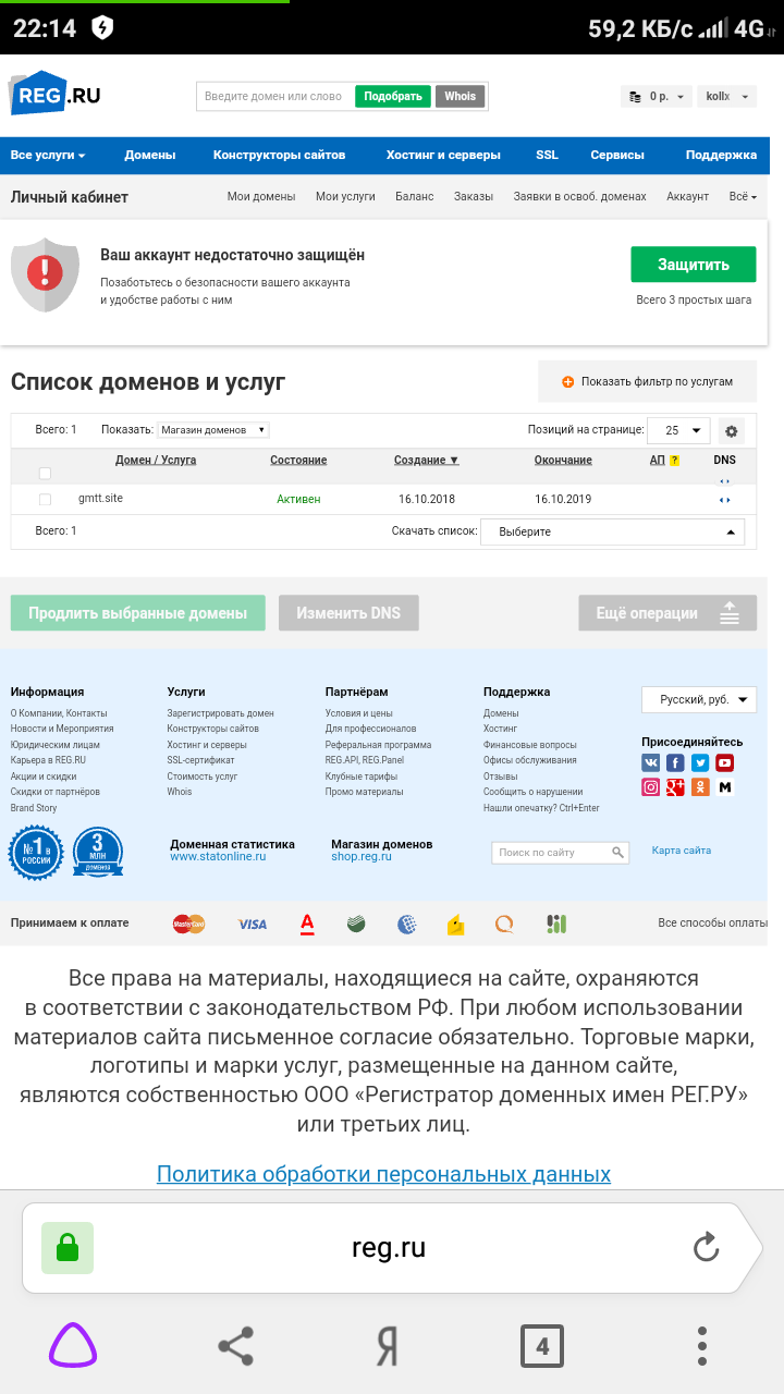 Ну я зашёл в кео там надо пробивать от рег вроде да ? Вот это днс?