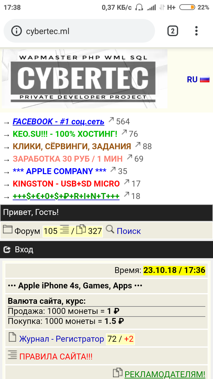 Пишет *Страница cybertec.ml не найдена*
