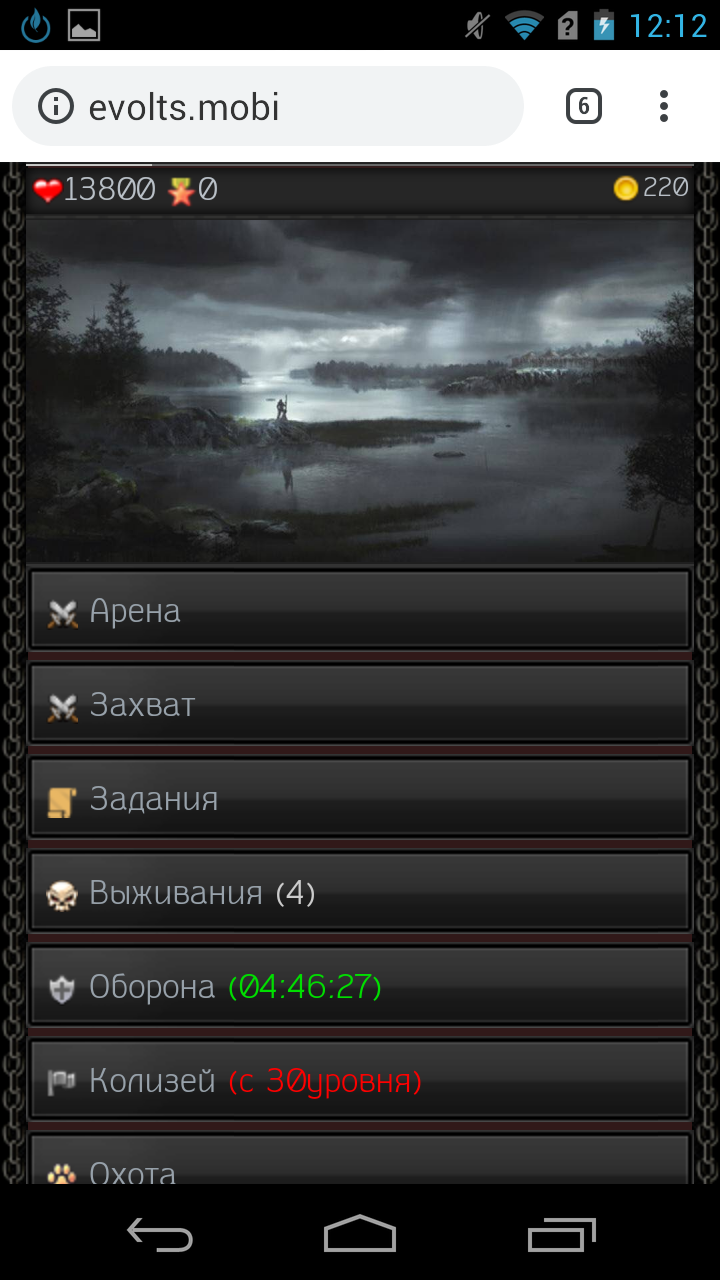 Вы регистрируетесь в игре evolts.mobi
