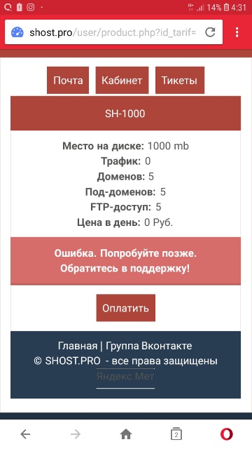 Хостинги/Домены | Ошибка