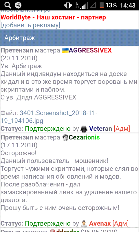 Жду ещё юзера,обещал показать скрины других твоих дел