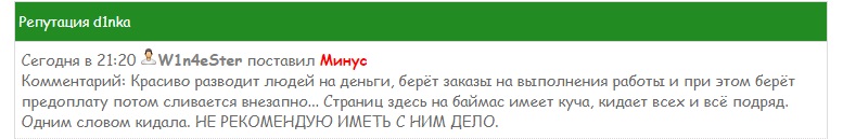 Также ещё нашлись 2 доброжелателя которые хотели "якобы взяться" за заказ, но почему то уже 2 сутки от них тишина. Заходят сюда, один вообще не читает мои письма а второй обещал сделать утром а уже вечер - досих пор не духа, не слуха!