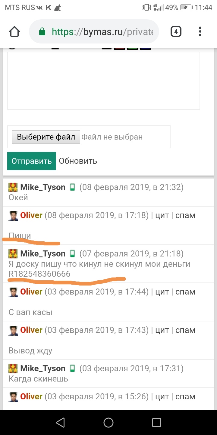 Суть причины пробовал скрипт он бизнесмен я скинул ему 120 р он сказал что в 00.00 кинет скрипт и не кинул. Ждал день не скинул потом он выложил его в магаз я пополнил ак и купил его там а которые скидовал ему 120 р он сказал что вернёт и не ворачивал потом написал что не вернёт.