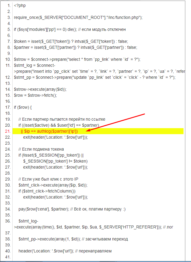 Есть код убираю подмену токена белый экран ) по сути в коде надо оставить что бы с любого ip и без токена засчитывался переход