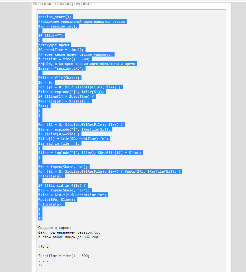 Онлайн: <?= ... select count(*) from users where online > time() ... ?>
