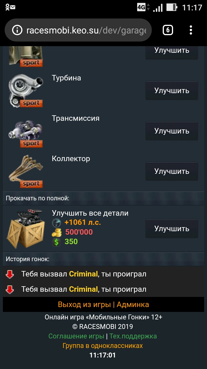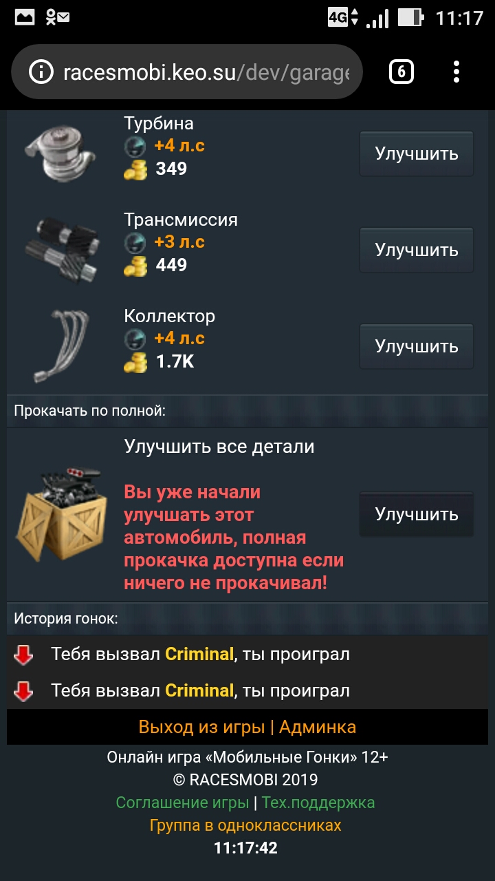 echo "<br><b class='red'>Вы уже начали улучшать этот автомобиль, полная прокачка доступна если ничего не прокачивал!</b>";