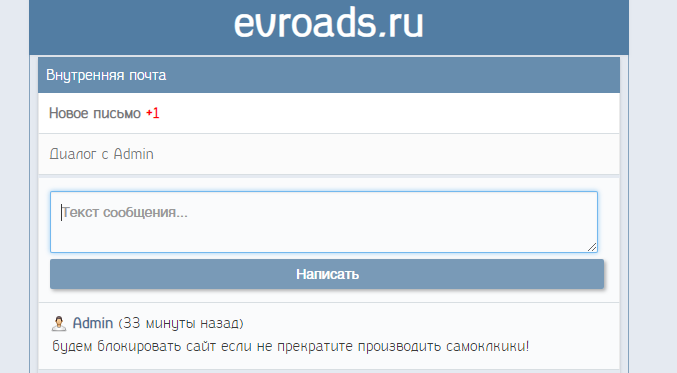 короче зарегался на evroads.ru и пару раз перешел по ссылки так как стало интересно что за сайты, реклама то интересная, о заработке и так далее. Ну а сегодня приходит сообщение от админа что я зарабатываю самокликами. Админы а что мешает сделать запрет за начисление денег за самоклик?
