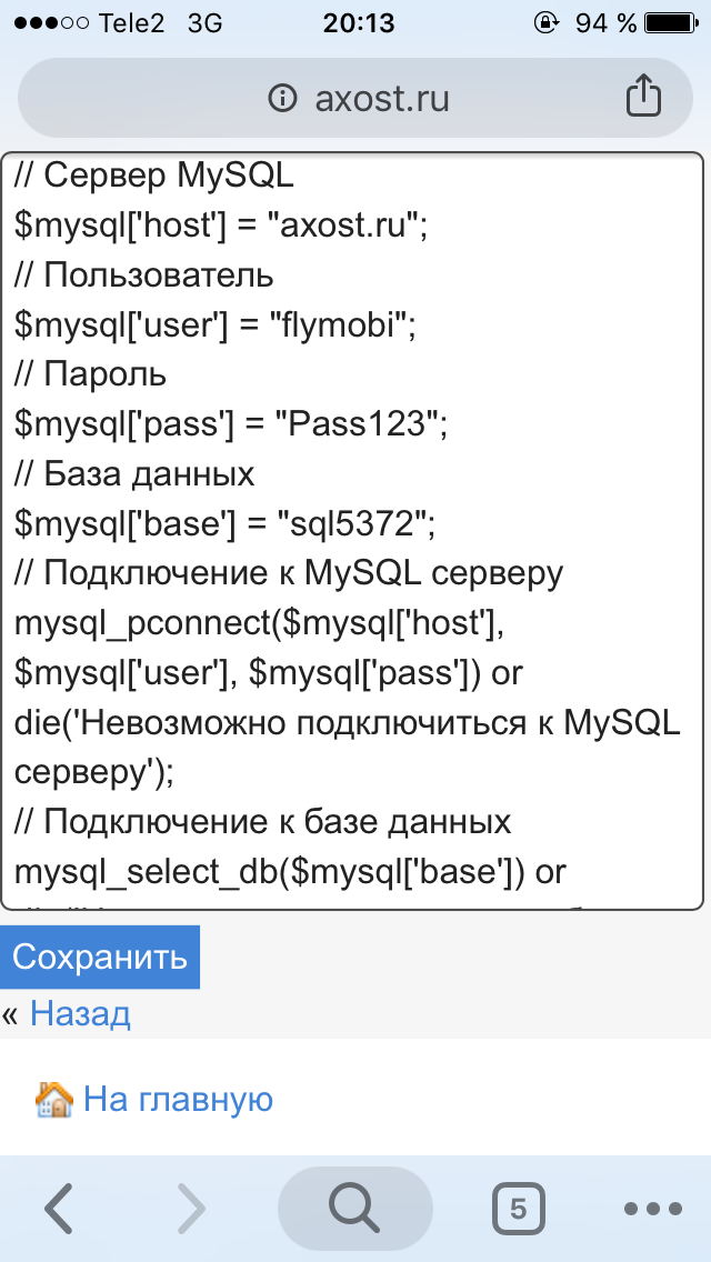 Что не правильно пишу , через phpmyadmin залил таблицы в базу SQL5372