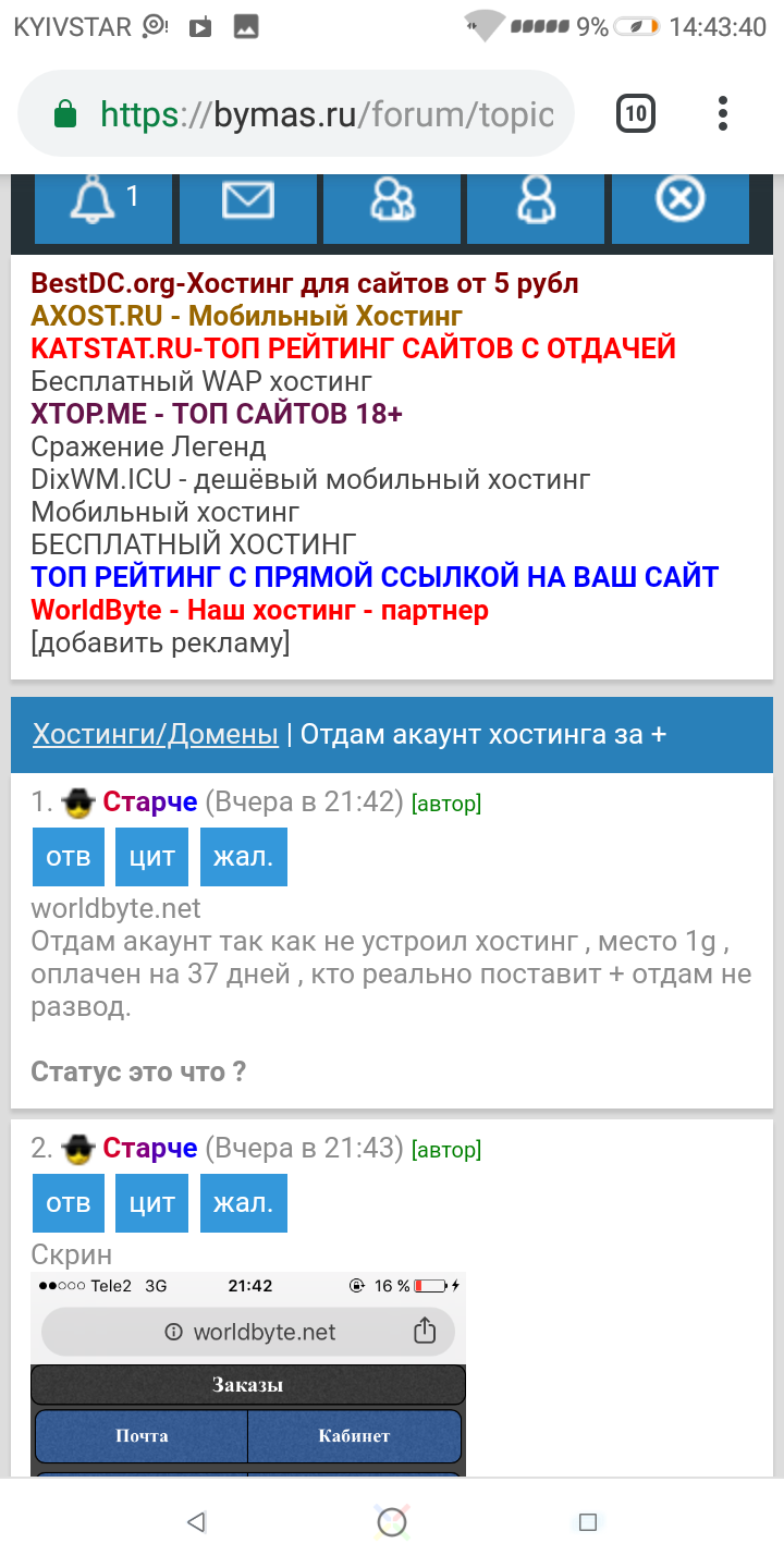 Помните тему "отдам хостинг за +"? Вчера выиграл его, вошёл, ещё поставить нечего не успел, оставил на сегодня. Сегодня захожу и все данные изменены, скриншоты переписки и входа ниже. Просьба повесить на доску, солгал и обманул. Накрутка рейтинга!