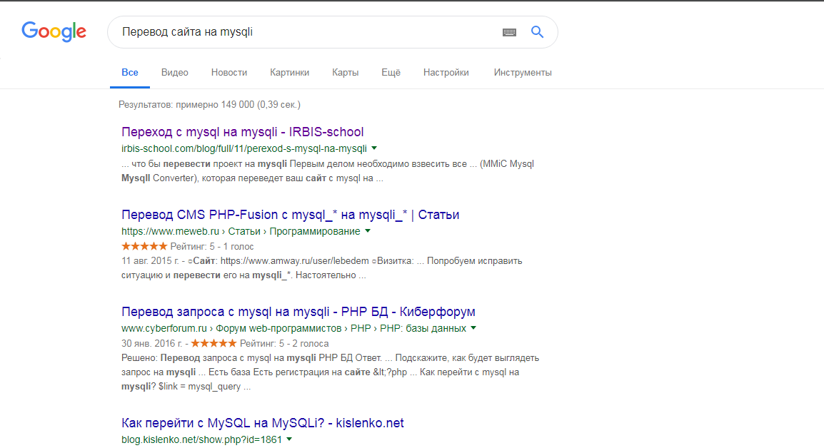 Перевод сайта на mysqli там в первом же Сылка на прогу