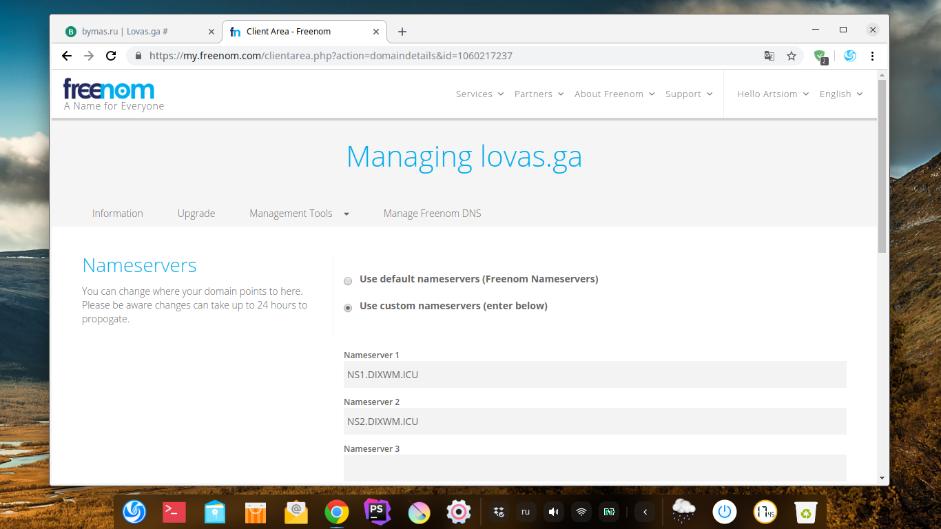 привет, помогите регнуть домен Lovas.ga с днс на ns1.dixwm.icu ns2.dixwm.icu спасибо за ранее, сменя плюс