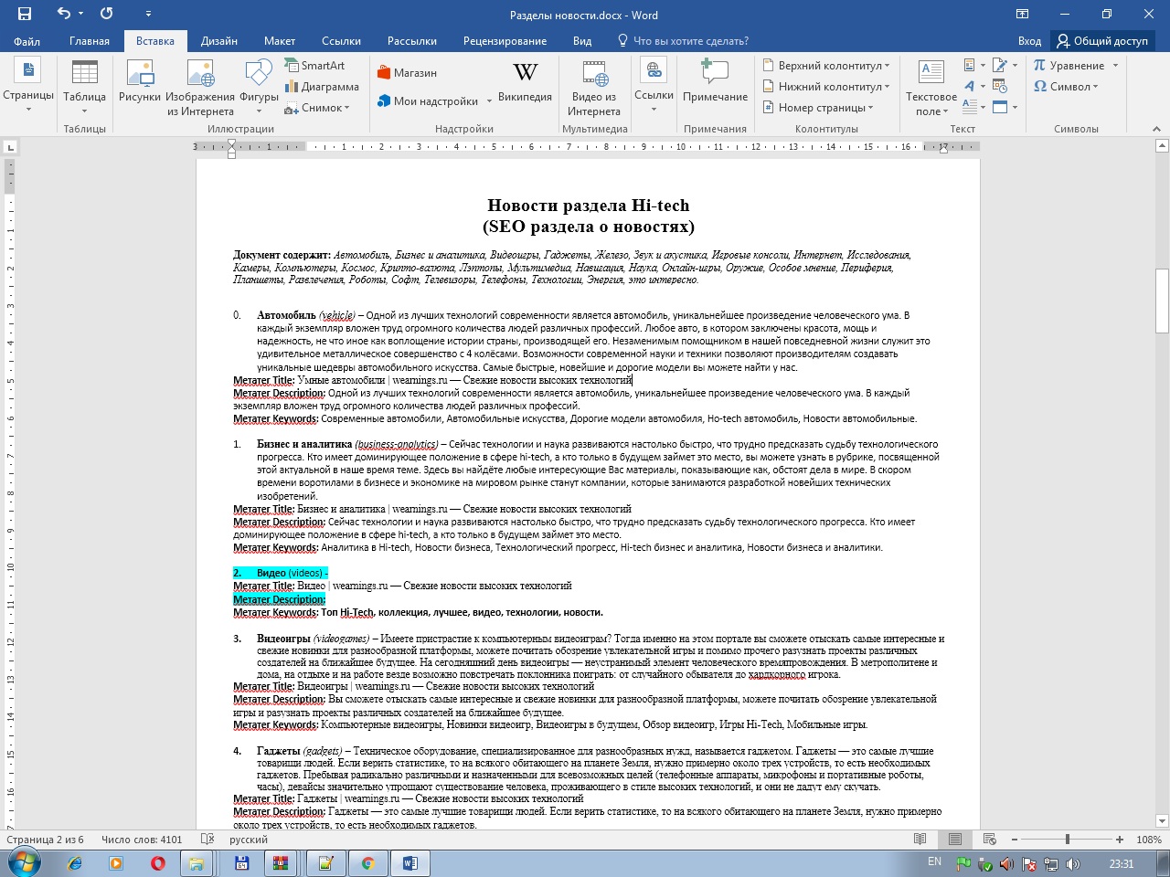 Вот делал в word для LivesTech Типо начального SEO (Уникальный рерайт и копирайт)