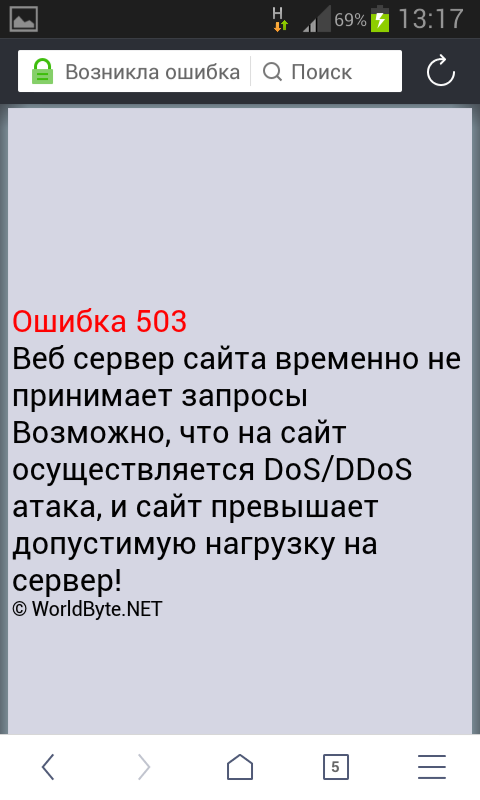 Веб сервер сайта временно не принимает запросы