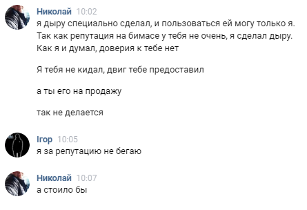 Так как автору пох на его репутацию то и на товар приобретенный им, ему тоже пох