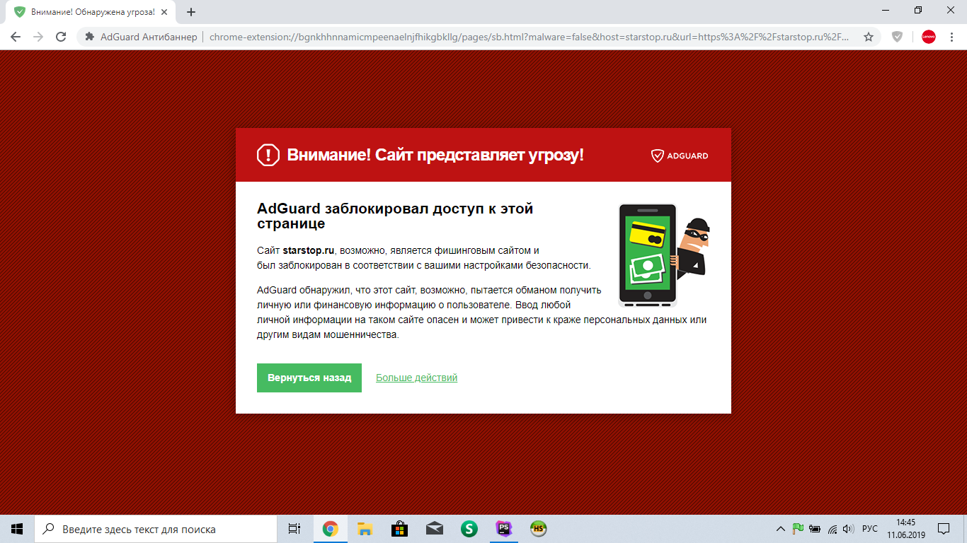 антивирус тут ни при чём, предупреждение о фишинге