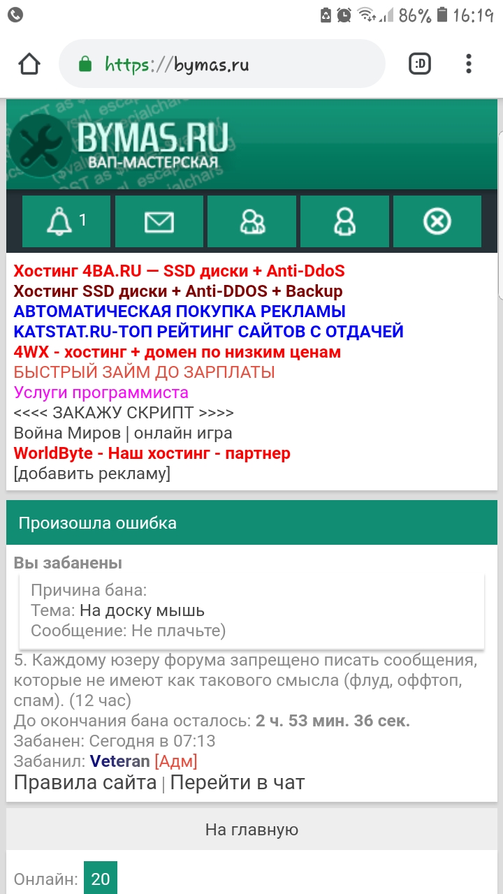 Мне бан выписал за оффтоп.
