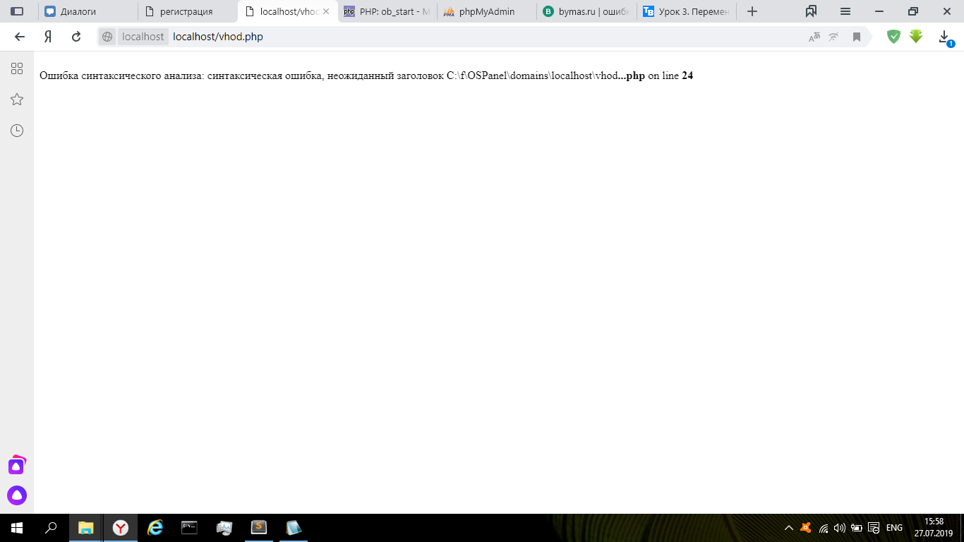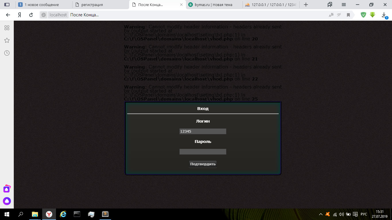 на хосте запускал все норм было запустил на локалки теперь при входе выбивает ошибку и не могу понять почему