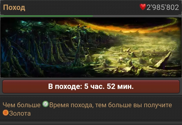 максимум 6 часов за каждое время после похода ты получаеш рандомное количество золота.