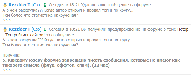 Бана у меня не было,просто предупреждение. Но сути не играет,оно пришло не за что