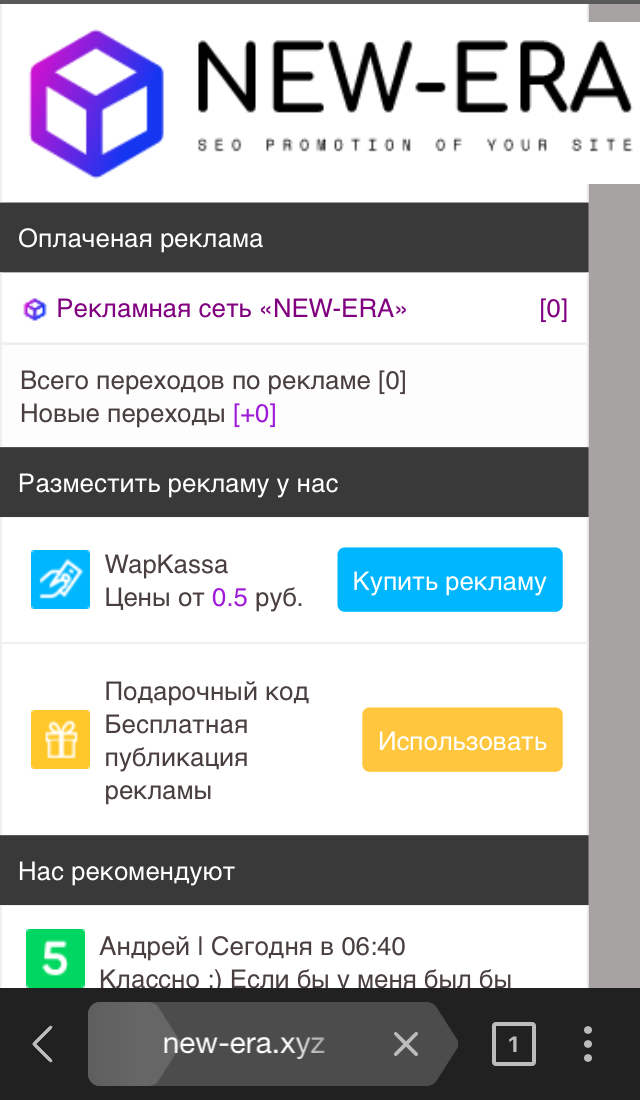 Полезные сайты | Рекламная сеть «NEW-ERA» - в сутки 0.2 руб!