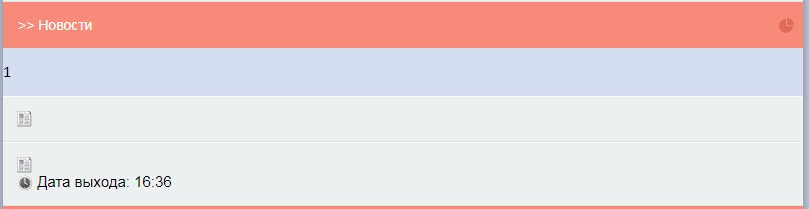 echo '<div class="title">>> Новости</div>'; $query = mysql_query("SELECT * FROM `news` ORDER BY `time` DESC LIMIT 1"); while ($newsone = mysql_fetch_assoc($query)){ if (string($newsone['text']) <= 500) $news_msg = output($newsone['text']); echo '<div class="razd"><b><img src="/style/img/news.png"><big> '.($newsone['name']).'</big></b></br></div>'; echo '<div class="razd"><b><img src="/style/img/news.png"> '.$news_msg.'</b></br>'; echo '<img src="/style/img/time.png"> Дата выхода: '.ptime($newsone['time']).'</div>'; } [Brony] pimnik98 (18.11.2019 в 16:38) А если так?