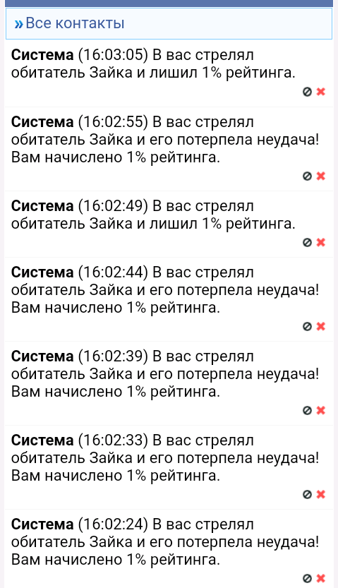 если обитатель промахнулся с него списывается рейтинг и добавляется в кого он стрелял если он попал списывается с другого и начисляется ему