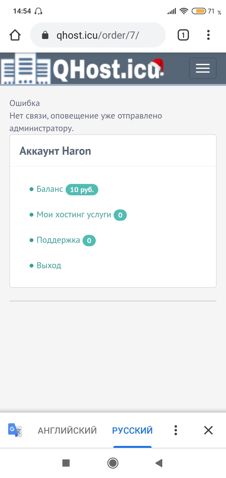Закинул для теста червонец. Решил заказать хост для теста. И вот