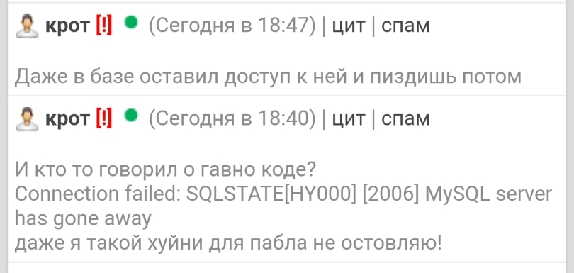 Сижу себе спокойно, и прилетают сообщения в лс (скрин). Обвиняя меня в каких-то ошибках (хотя этот трукодер даже не удосужился прогуолить ошибку) в моих скриптах (которым уже лет так по 5 и более), и что даже он (трукодер) не делает таких серьёзных ошибок)) вообщем шут гороховый
