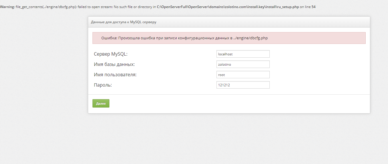 Пол дня уже мучаюсь, на Open Serv не могу поставить. Выскакивает сначала скрин 1 , пропускаешь выскакивает скрин 2 . Вручную базу прописывал, открывается с оформлением но не хватает табл.