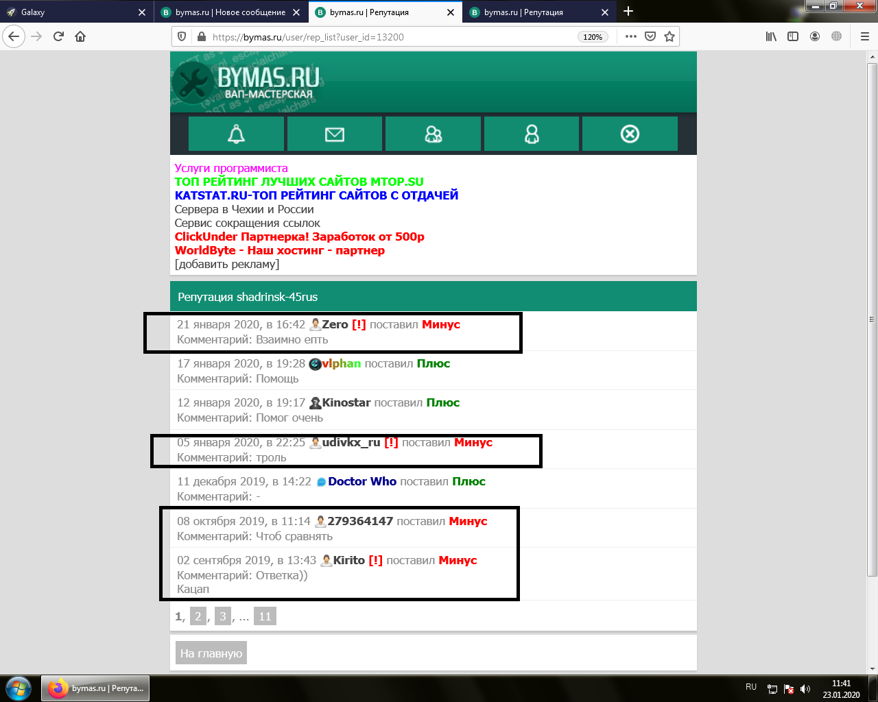 Данный пользователь на доске позора