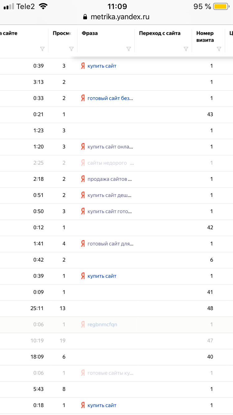 Dmitry , у тебя в метрике, должны отображаться поисковые запросы, по которым заходят к тебе на сайт, вот смотри их... ни о каком "купить сайт" речи не может быть... твои страницы даже не оптимизированы под эту фразу.. а тебе он выводится в топе, потому что ты заходишь на него постоянно, и яндекс выводит тебе его