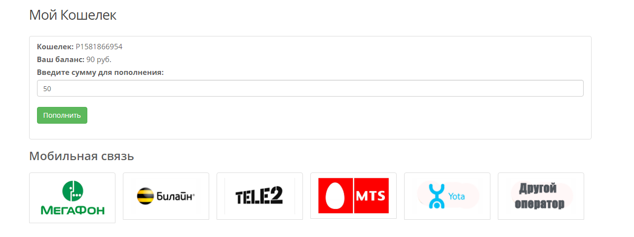 Электронные кошельки: QIWI, Яндекс кошелек, внутренние переводы