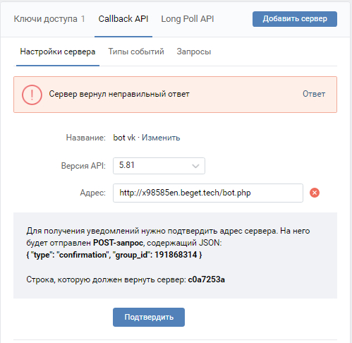 Вот какая хрень, на другом домене нормально идет ответ и подтверждает , на этом нифига, что делать? Фаилы все одни и теже