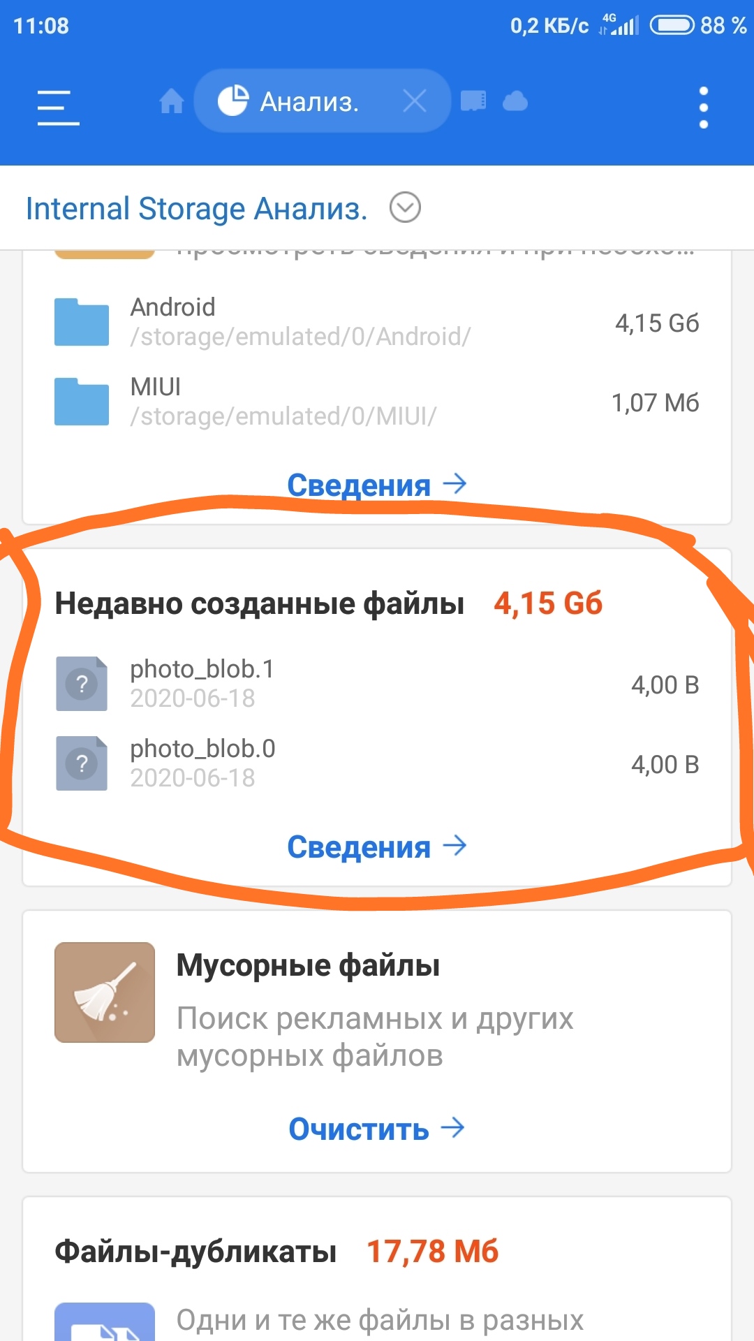 И удали все путем нажатия на папку и удерживания, после выбора папок и файлов удали, а лучше все что там есть удали.