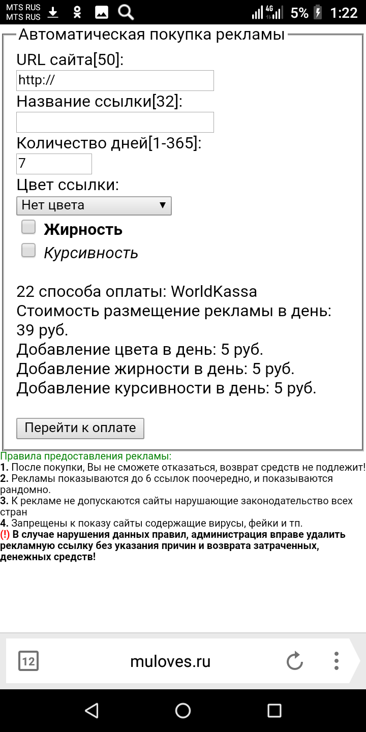 Может модуль не правильно работает? Сама ссылка покупки рекламы отображается?