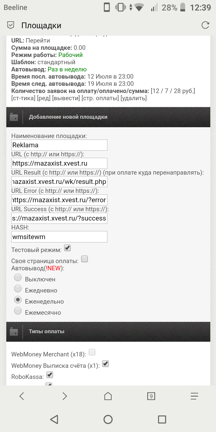 <? $id_shop='6777';//ID площадки на WorldKassa $hash='wmsitewm';//Секретный ключ (HASH) ?> php