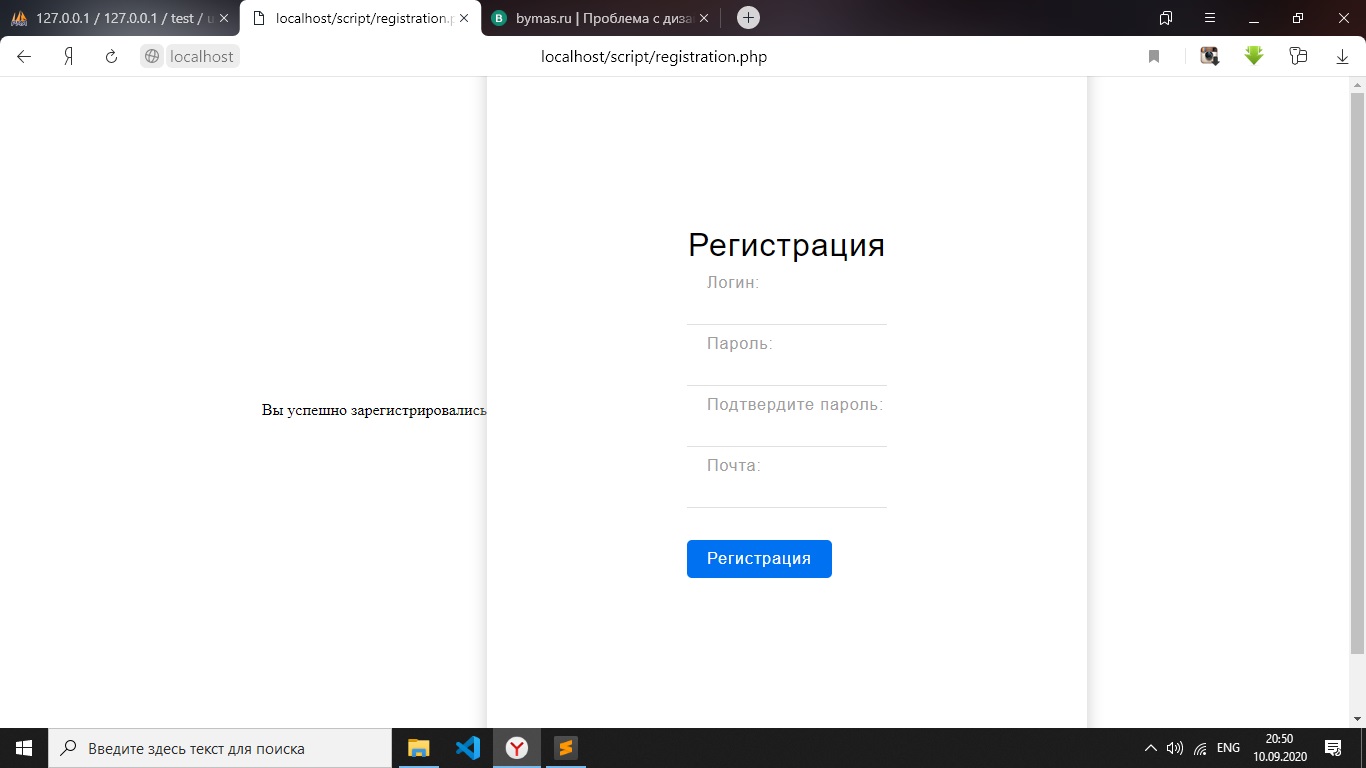 echo '<div class = "winer">Вы успешно зарегистрировались</div>';