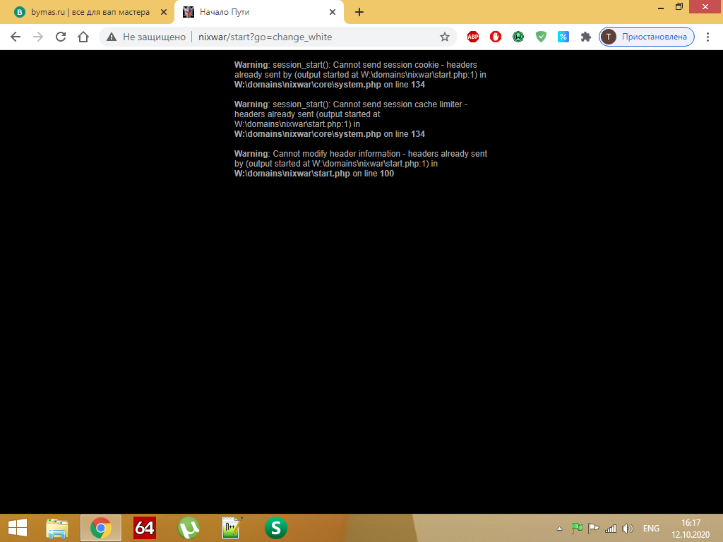 Предупреждение: невозможно изменить информацию заголовка - заголовки уже отправлены (вывод начался с W: \ domains \ nixwar \ start.php: 1) в W: \ domains \ nixwar \ start.php в строке 100