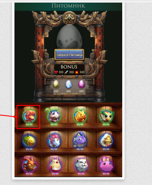 RoMa96Ua , ну если бы под каждой картинкой питомца была кнопка ("посмотреть" или "параметры") то я бы еше посматрел всех питомцев, а так без кнопок не сразу понятно то ли это просто картинка питомца то ли по ней можно перейти