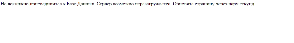 die ("Не возможно присоединитса к Базе Данных. Сервер возможно перезагружаетса. Обновите страницу через пару секунд");