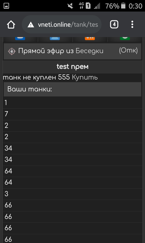 Scitalec (09.11.2020 в 20:04) if ($tank == $ttt) { echo "танк куплен"; } elseif($tank != $ttt) { echo "танк не куплен $ttt "; echo '<a href="/tank/test.php?2"> Купить</a>'; Как что бы работало условие
