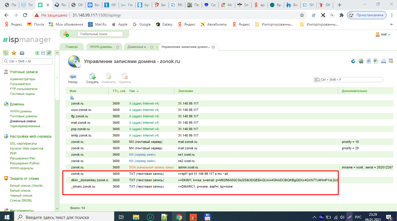 , TXT запись с dkim._domainkey где?