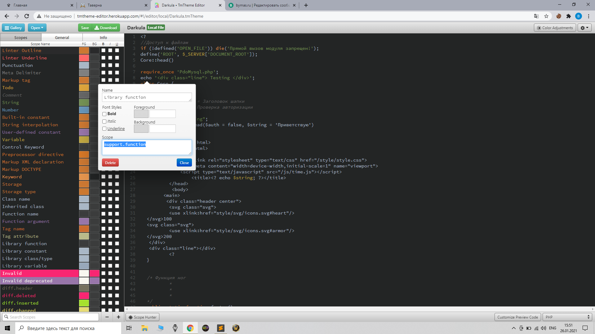 Всем привет. Может кто знаком с этим сайтом http://tmtheme-editor.herokuapp.com/ Кто создавал себе подсветку синтаксиса? Я вот хочу задать отдельный цвет для но я никак не пойму откуда берется Scope